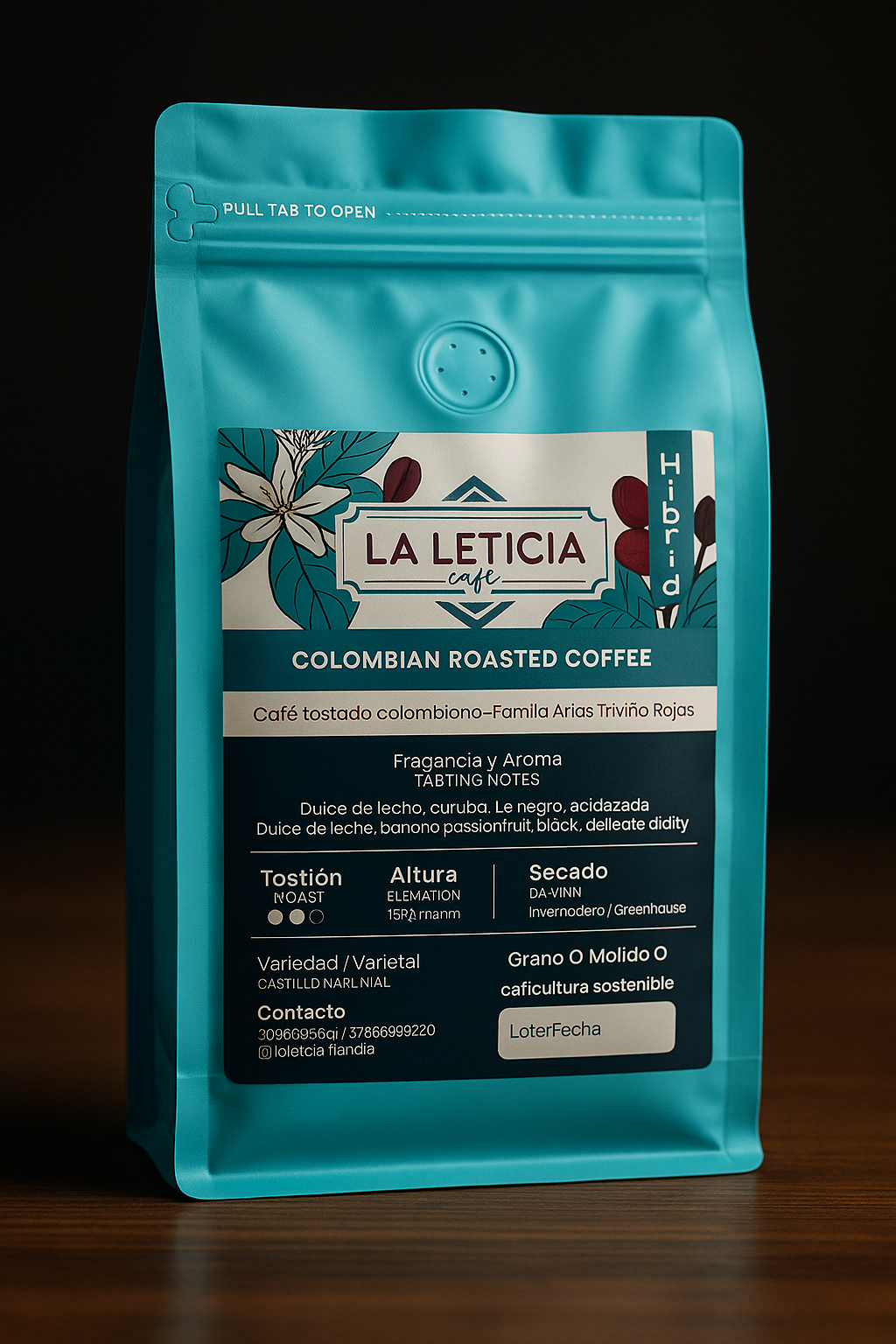 Cultivado a 1470 msnm en nuestra finca La Leticia, por la Familia Arias Triviño Rojas, este café expresa una fragancia envolvente y un perfil complejo: panela, maní confitado y suaves notas de especias, con una acidez media que equilibra dulzor y frescura.